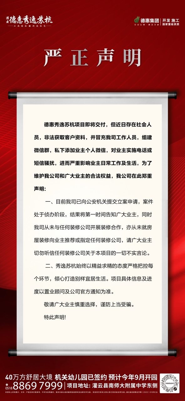 灌云德惠秀逸蘇杭項(xiàng)目聲明